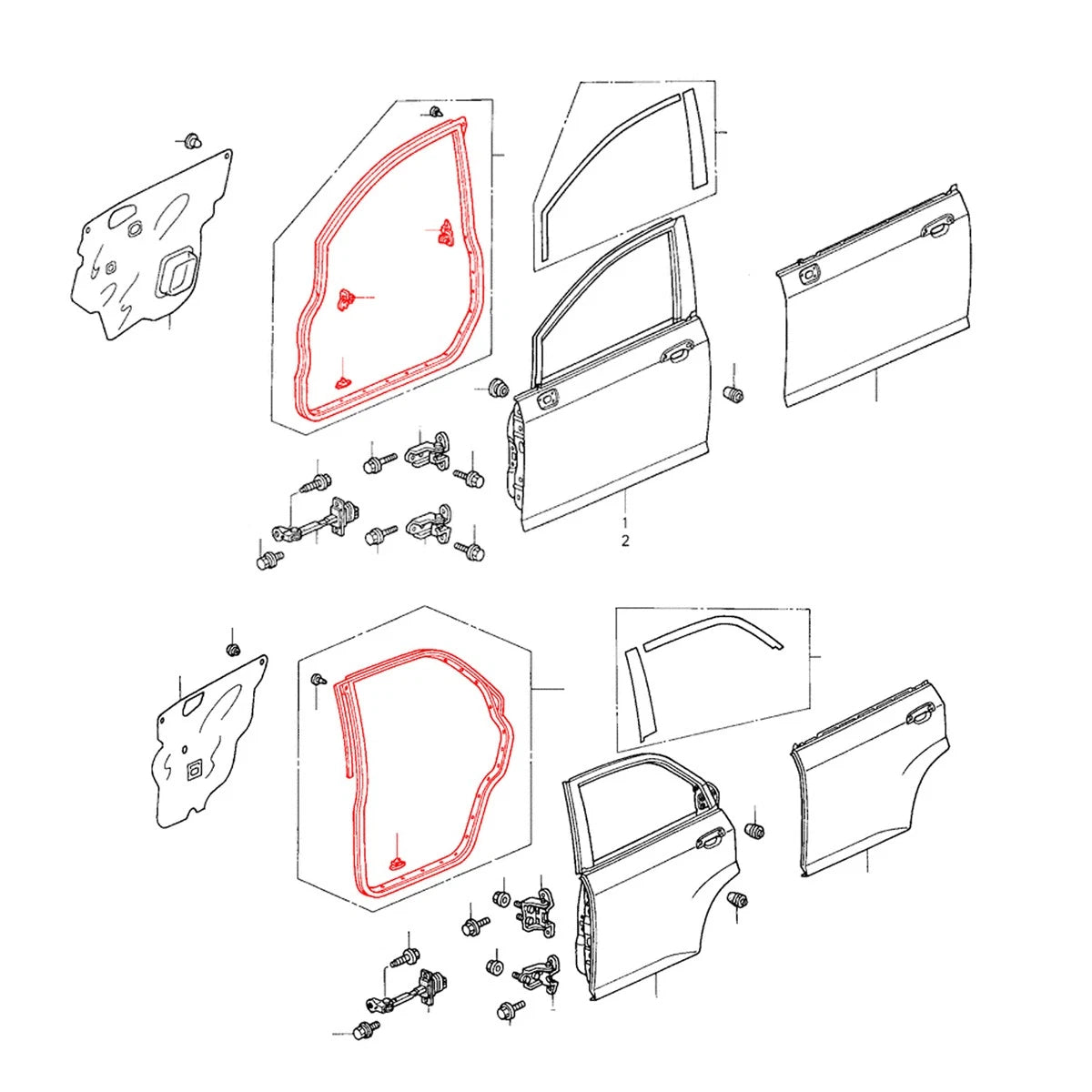 - Complete set of door weatherstrips for all four doors