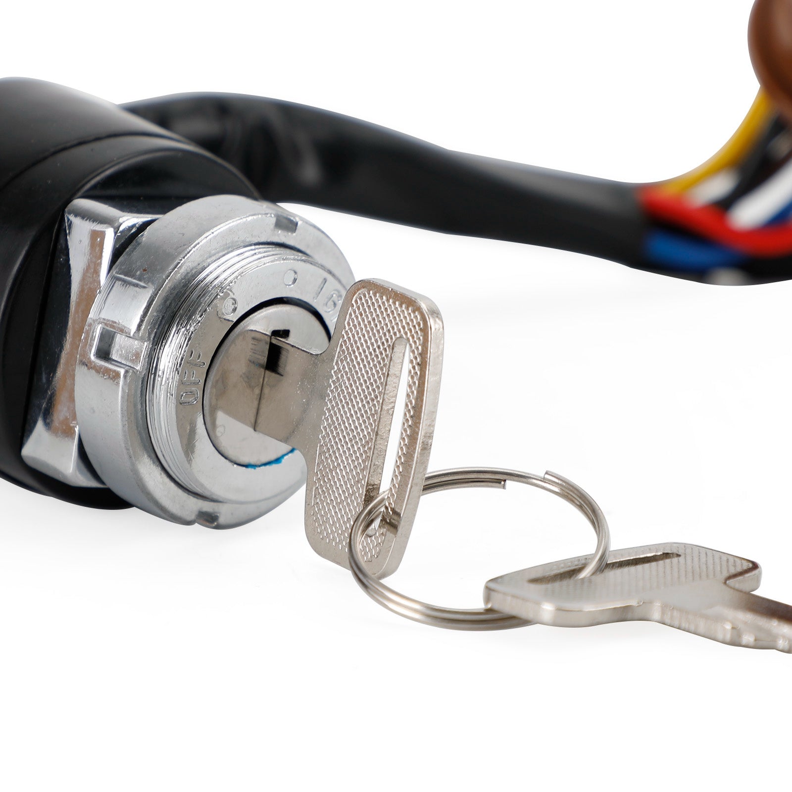 Ignition Switch with 2 keys and harness wiring round connector.